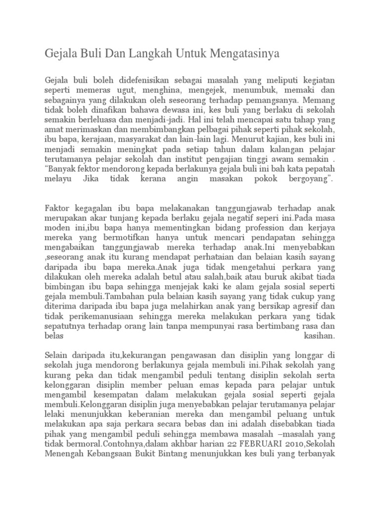 Karangan Langkah Mengatasi Gejala Buli Di Sekolah : Ipendidikan » karangan » punca dan cara mengatasi gejala buli dalam kalangan pelajar sekolah.